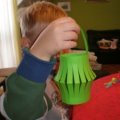 - Izrezati još jednu usku a dužu trakicu koja će biti ručkica i na kojoj će lampion visiti i priepiti je na rubove sa unutrašnje strane.