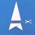 - Izrezati papir pravougaonih dimenzija (npr. 20cm x 10cm), presaviti ga dužom stranom pa makazama zarezivati od sredine prema rubu trakice na otprilike istoj udaljenosti.